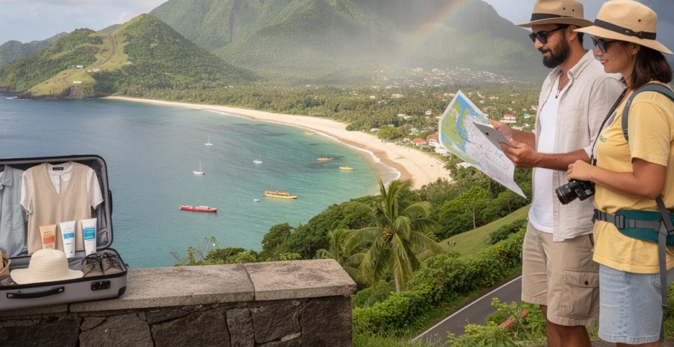 Cette stratification altitudinale crée un véritable gradient climatique en l’espace de quelques kilomètres, passant d’un littoral chaud et ensoleillé à une ambiance quasi brumeuse et fraîche sur les hauteurs. Pour une randonnée sur la Soufrière ou dans le Parc national, il est indispensable de prévoir des vêtements adaptés : une couche respirante, une couche chaude légère et une protection imperméable. Sans cette préparation, vous risquez de subir un contraste désagréable entre la chaleur du départ et la fraîcheur humide de l’altitude, surtout si le temps se couvre rapidement.