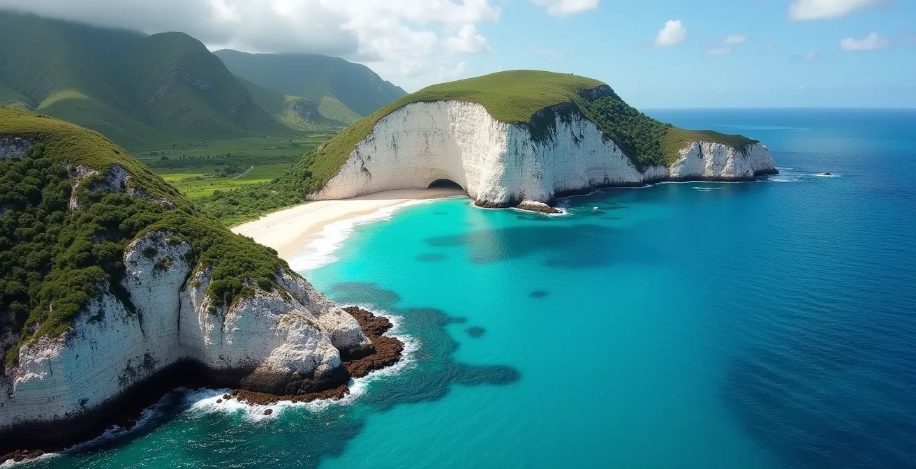 Imaginez un papillon posé sur la mer des Caraïbes. Ses ailes, déployées sur près de 300 kilomètres de pourtour, ne sont pas uniformes. Elles dessinent une ligne côtière d’une diversité inouïe, un monde où les falaises abruptes de l’Atlantique répondent aux lagons turquoise protégés par des récifs coralliens. Pourtant, pour beaucoup, le littoral guadeloupéen se résume à une poignée de plages célèbres, une vision parcellaire qui occulte l’essentiel : sa nature profonde de récit continu, un véritable livre ouvert sur l’histoire de l’archipel.