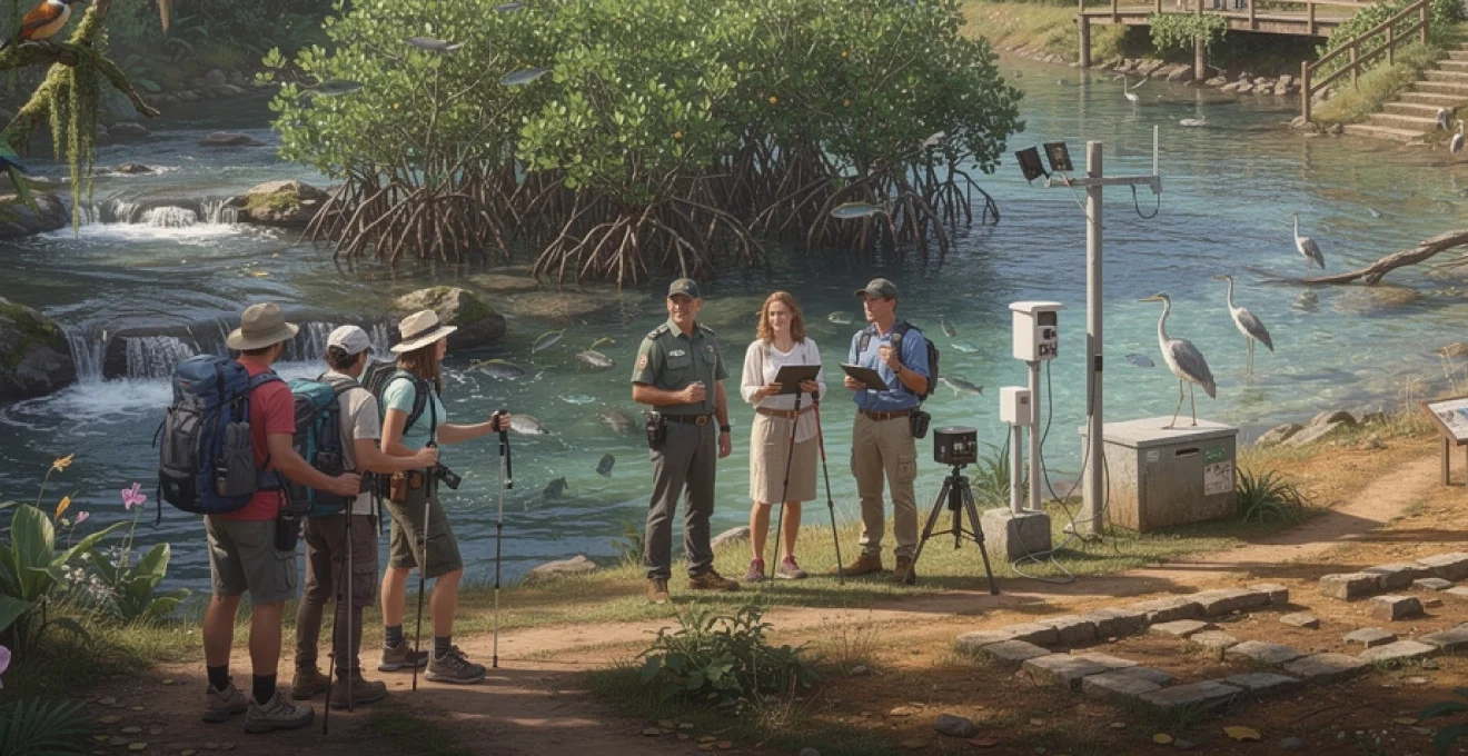 Cette richesse faunistique fait l’objet de nombreux programmes de suivi scientifique coordonnés par le Parc National, en lien avec des laboratoires de recherche, des associations naturalistes et des réseaux caribéens. Les données collectées (comptages, baguages, enregistrements acoustiques, pièges photographiques) permettent de mieux comprendre l’état de conservation des espèces, leurs déplacements et les pressions auxquelles elles sont soumises : fragmentation des habitats, prédation par des espèces invasives, changement climatique.