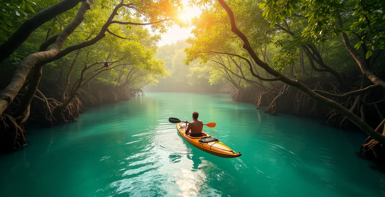 Le kayak de mer vous permettra de vous faufiler entre les arbres avec facilité, en traversant des endroits inaccessibles en bateau.